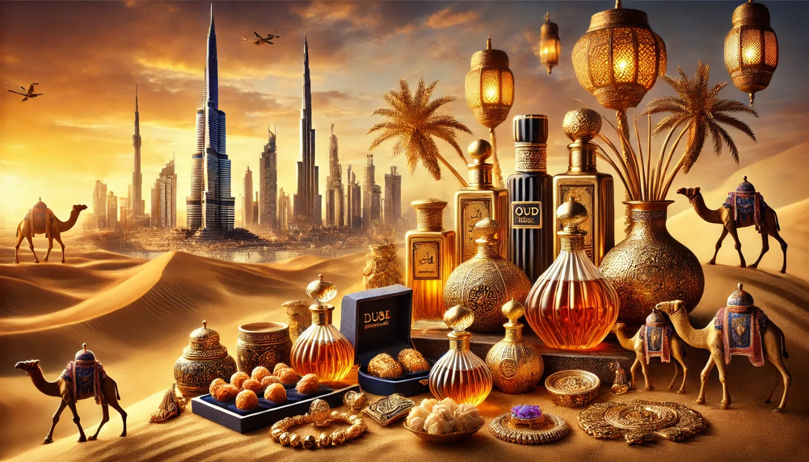 Dubai’nin çöl kumları, cam şişeler içinde dekoratif bir şekilde sunulur. Şişelerin içine deve, palmiye veya Burj Khalifa gibi figürler işlenir.